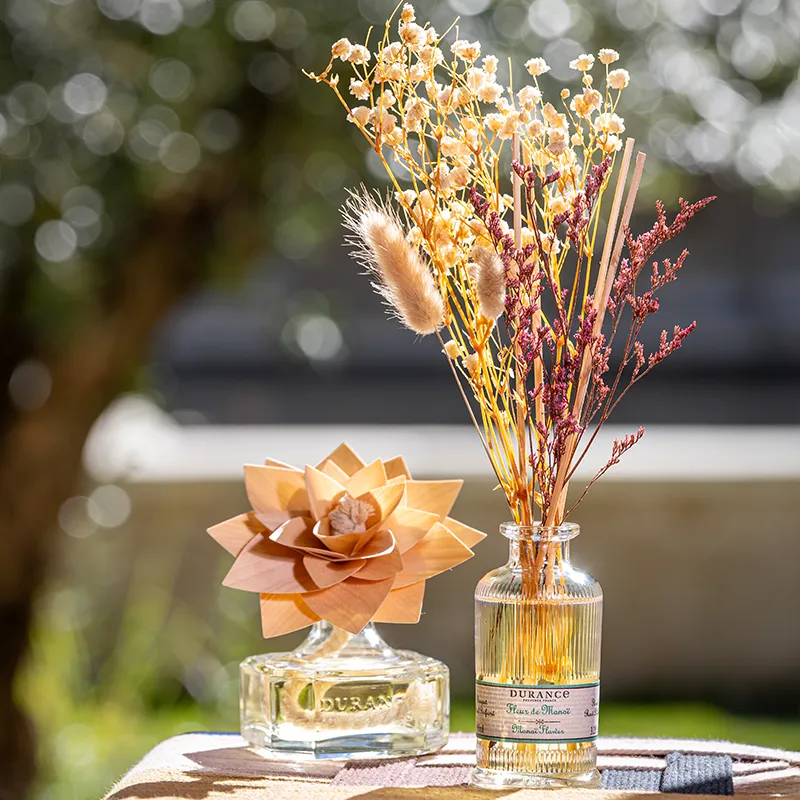 Durance vi propone diversi formati di diffusori di profumo: i bouquet da 100 ml della gamma Bibliothèque de parfums sono perfetti per ambienti fino a 20 m², mentre i bouquet da 225 ml della collezione Eternelles per ambienti tra 30 e 40 m². Non riesci a trovare quello che stai cercando? Puoi anche acquistare separatamente i flaconi, le ricariche e i bastoncini in rattan per creare il diffusore di profumo dei tuoi desideri.