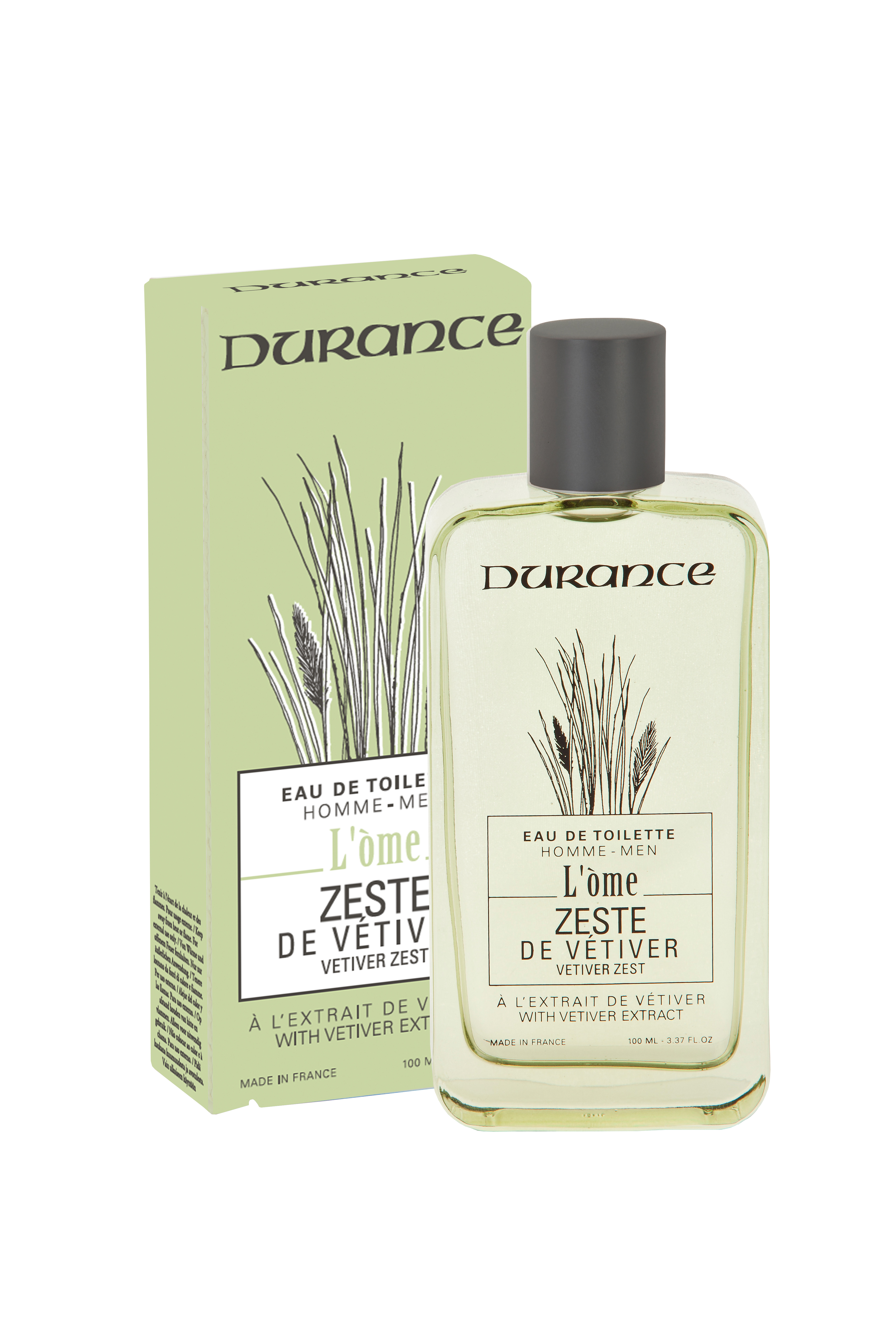 Il sud della Francia è sempre stato un luogo di transito e noto in tutto il mondo per le varietà delle piante coltivate. Il vetiver ha saputo mostrarsi alle sue raccoglitrici in tutte le sue ricchezze: il suo caratteristico profumo legnoso che firma gli eleganti profumi da uomo. Durance celebra l'uomo attraverso questo arbusto emblematico, il vetiver. I nostri profumieri di Grasse hanno elaborato questa fragranza legnosa addolcita dalla scorza del pompelmo. Eau de Toilette da 100ml. Flacone in vetro.